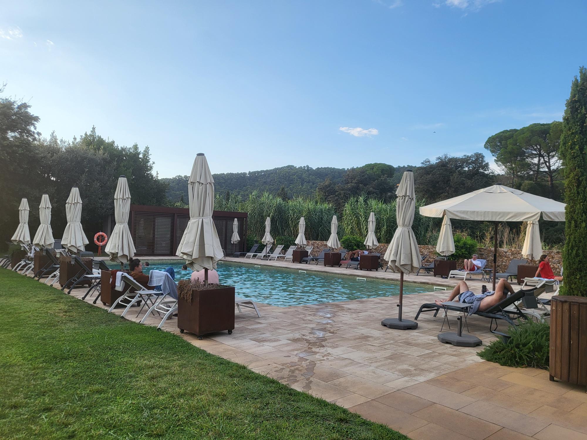 After 2 days exploring Barcelona, Liane and I meet Maureen at the Estacio de Autobuses Barcelona Nord. We are about to embark on our 6-day hike of the Cami de Ronda along the Costa Brava in Northern Spain. The bus takes us to Palamos. When we arrive at the new Moventis bus station at the outskirts of Palamos, I call a taxi. I explain in my best Spanish where we are and where we need to go. Hotel Mas Del Sol, in the middle of nowhere, in between Palamos and Palafrugel. To my relieve, 20 minutes later, a taxi with a nice lady shows up and she drives us to the remote location of our old and beautiful farmhouse hotel.